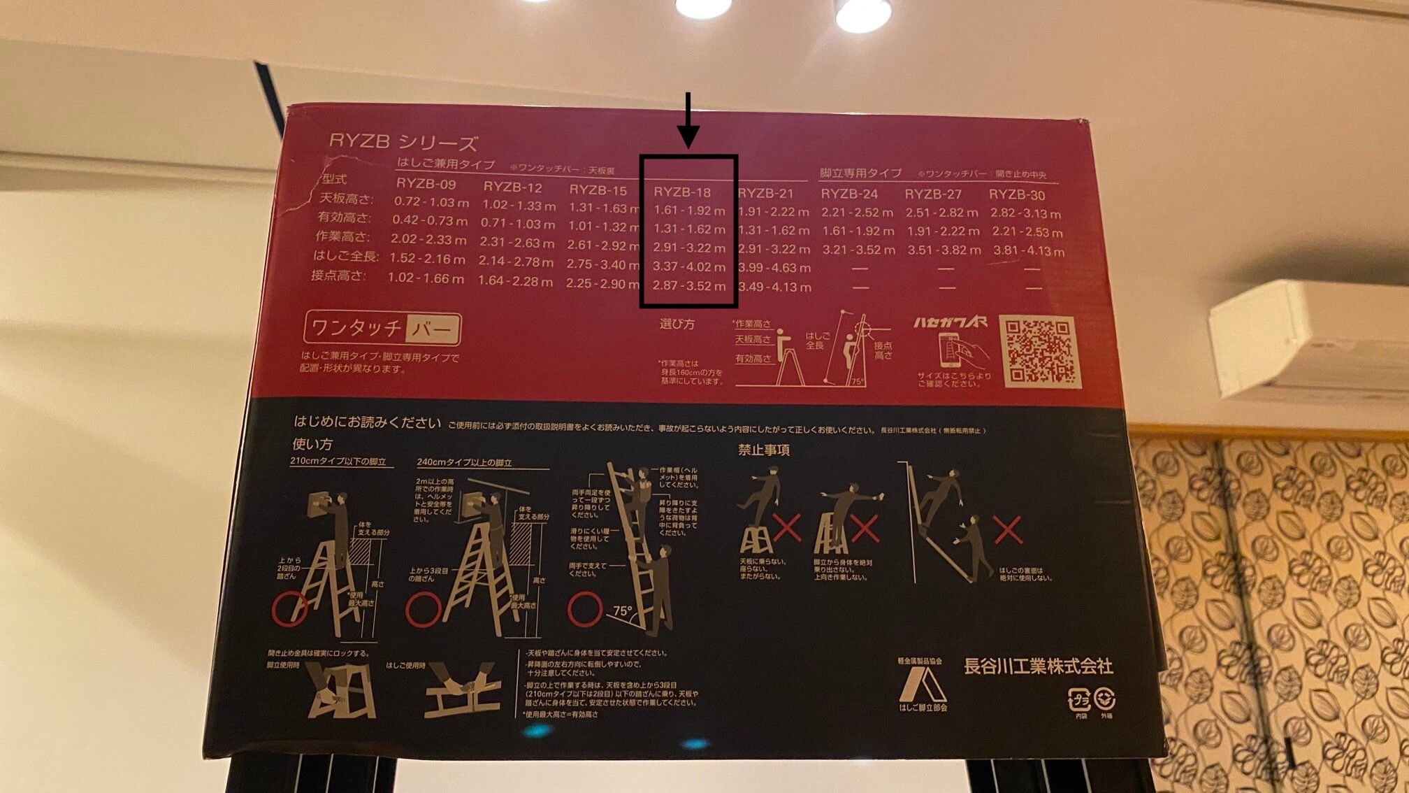 レンタル対象の脚立は「ハセガワ RYZB-18 脚部伸縮式 はしご兼用脚立」です。
